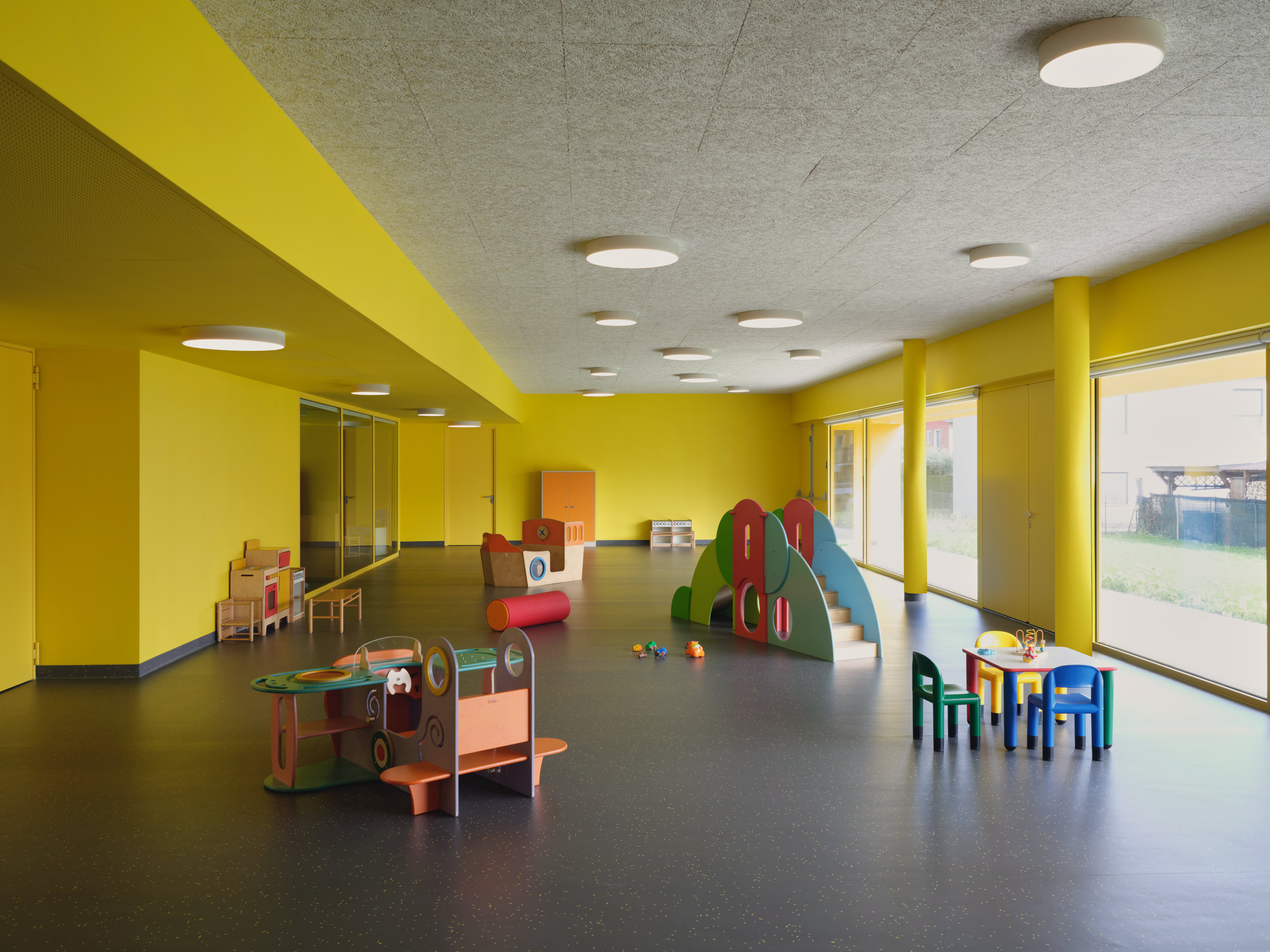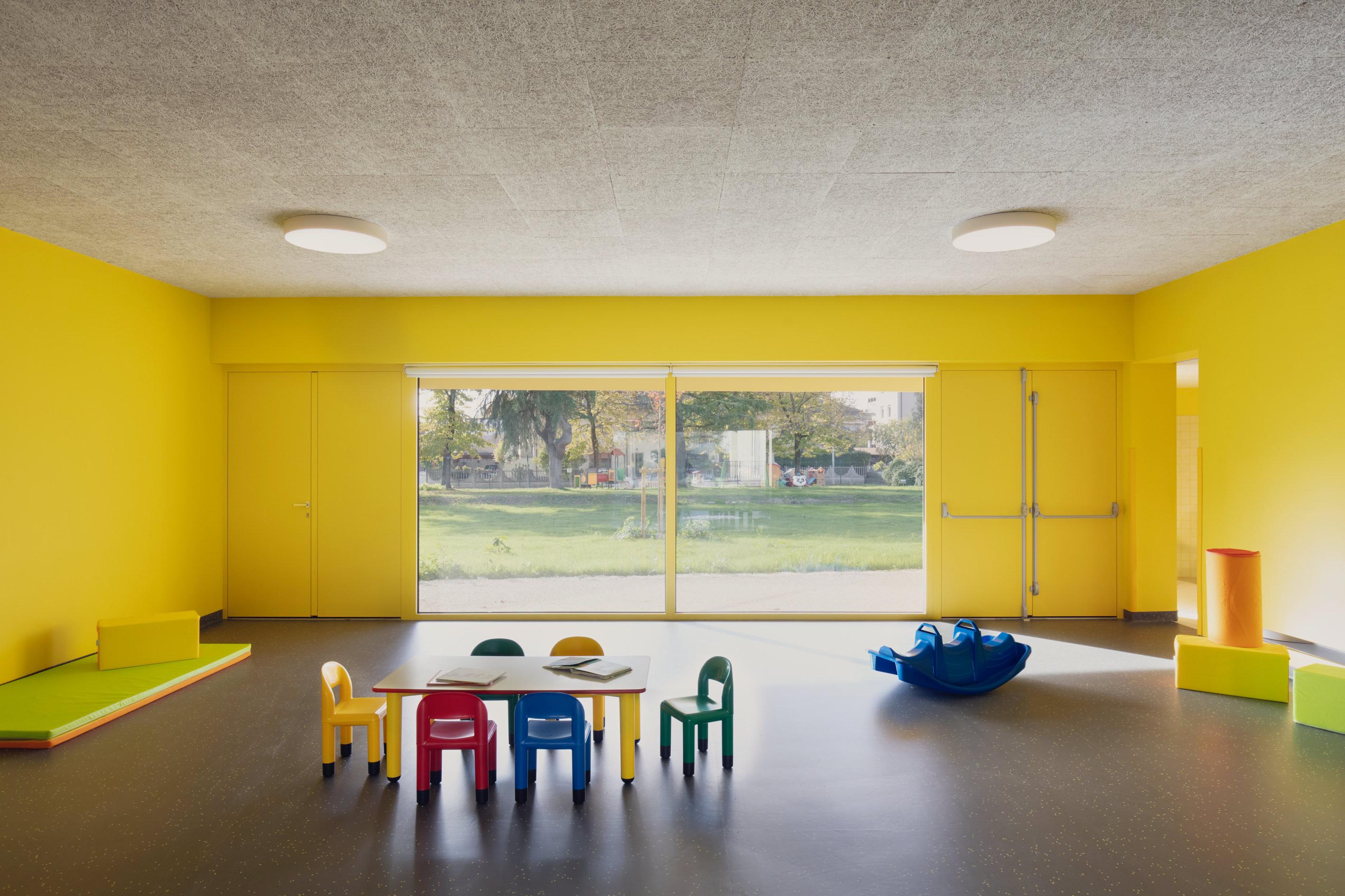 La nuova scuola dell'infanzia a Adria (RO), situata su un lotto di 2.100 m², copre 750 m² ed è caratterizzata da spazi didattici flessibili e un forte legame con la natura circostante. Il design enfatizza l'importanza del gioco all'aperto e del contatto con l'esterno attraverso ampie superfici vetrate. L'edificio modulare offre facilità di adattamento per future esigenze e trasforma spazi in base alle necessità educative, garantendo un ambiente di apprendimento dinamico e interattivo per i bambini.